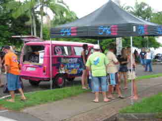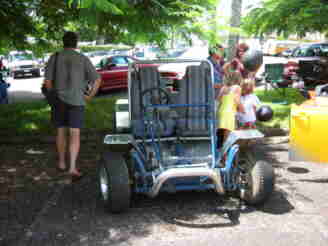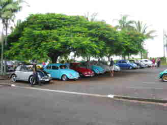 | This is the first year for this event. Held my a new chapter of Klub VW (the Sunshine Coast Chapter) at the famous tourist attraction - the Big Pineapple at Nambour. The event was well supported by their club members and sponsors, however the threatening clouds and the forcast of rain and showers kept some of the 'show only' crowd away. A shame as it was well worth attending! There was a cruise organised from a shopping centre just north of Brisbane to the event so many of us 'southerners' met here and became bart of the cruise. I found that the cruise was way too slow (to the point of being dangerous - 65km/h in a 110km/h zone is asking for trouble), and the cars were bunching up causing problems at on and off ramps along the highway, so rather than stay with the cruise and risk an accident, I went ahead to the big pineapple and filmed them arriving. There was a number of trophies on offer, which were judged by the public, and these were handed out to the winners just after lunch. Throughout the day raffle prizes were drawn however I was not sucessful in winning anything this time! The photos below pretty much tell the story....