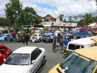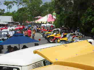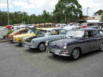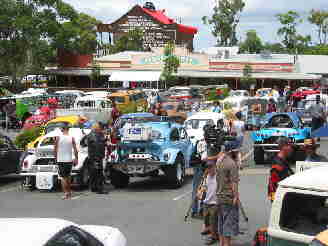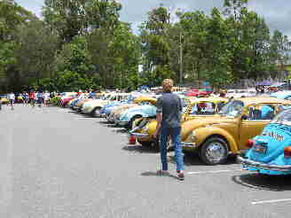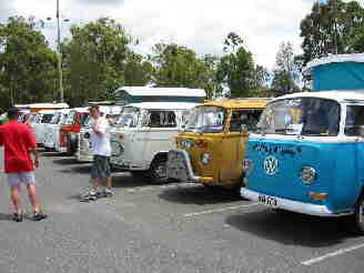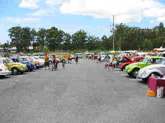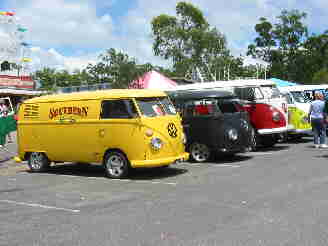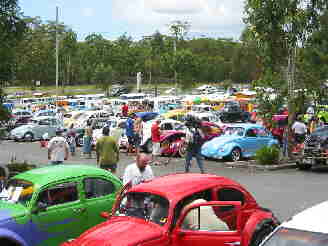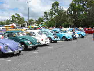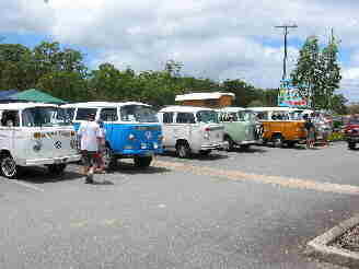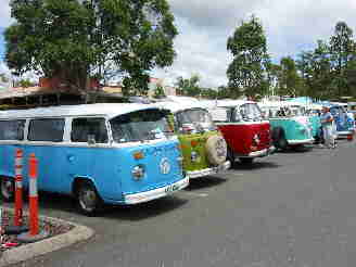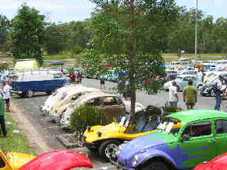 | Just as they did in the past, the Bad Little Bug-gers V-Dub club did a great job of hosting the Dubs by the Pub run to the Ettamogah Pub, on the Sunshine Coast (north of Brisbane). I don't know how many vehicles showed up for this cruise and swap, but lets just say there were plenty to look at! The cruise from the Brisbane Entertainment Centre to the Ettamogah Pub caused a traffic jamb miles long, but I didn't see one angry face (how could anyone be angry with a long line of VW's of all types?) Due to page downloading time issues, I have only included some of the 90 odd pics that I took on the day - mostly of the cars parked at the Pub, and a few of the cars (and bikes) that I found to be the most interesting. Take the time to check out the amazing black trike - fitted with fuel injection and twin turbos! The owner told me that it is capable of 0 to 100km/h in just under 4 secs if he keeps the front wheel on the ground! YIKES!